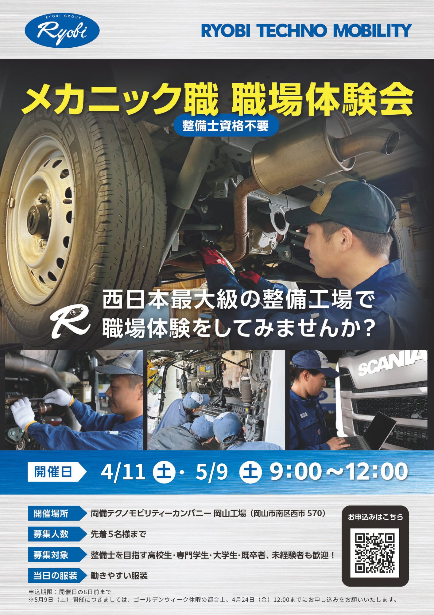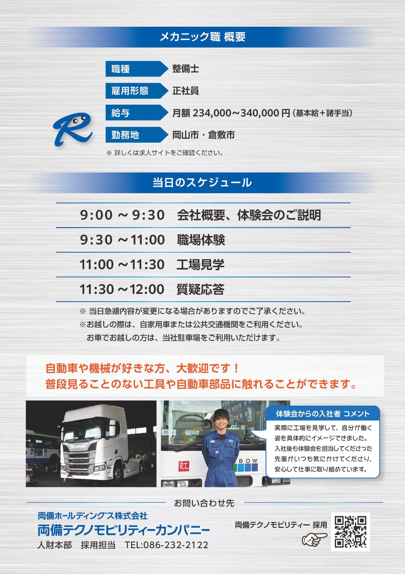 対象者: 整備職を目指す高校生、専門/大学生、既卒、未経験者